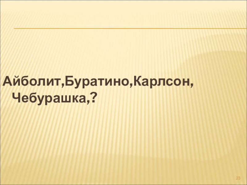 Айболит,Буратино,Карлсон,Чебурашка,?