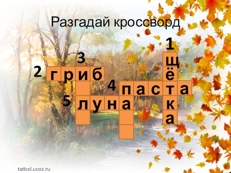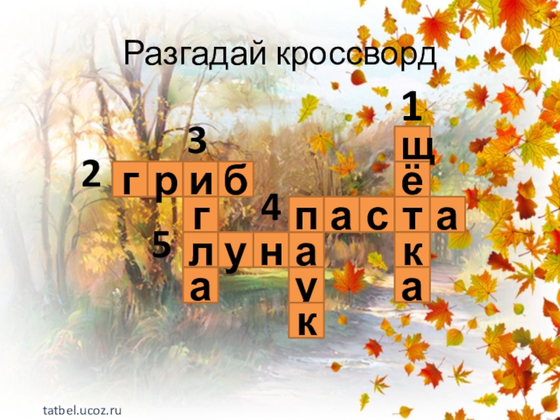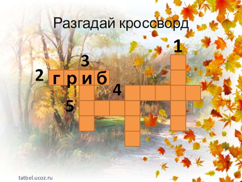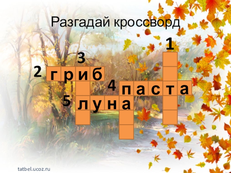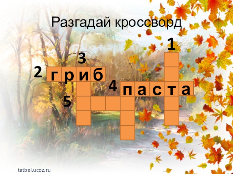 Разгадай кроссвордгрибглаунапукастаёщка12345