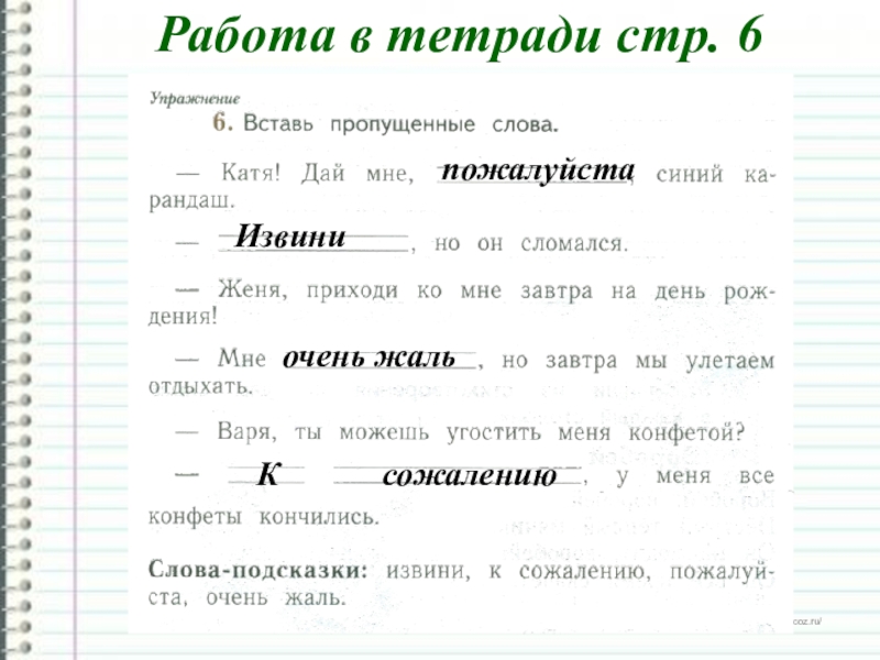 Работа в тетради стр. 6пожалуйстаИзвиниочень жаль  К      сожалению