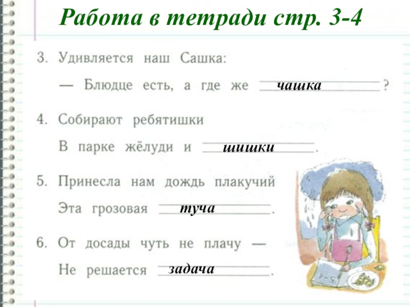 Работа в тетради стр. 3-4щукачайкичашкашишкитучазадача