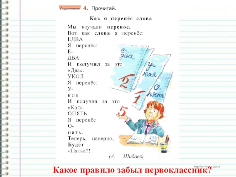 Работа  по учебнику  стр. 93    Какое правило забыл первоклассник?