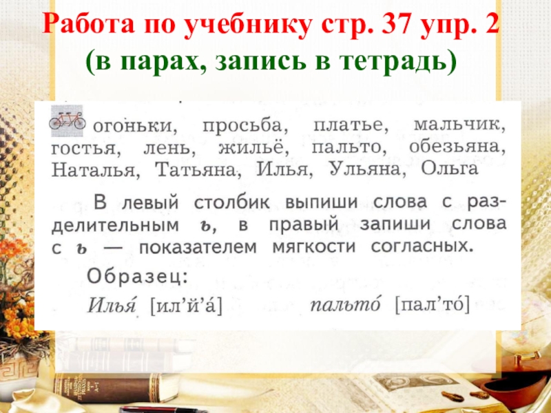 Слайд 10Работа по учебнику стр. 37 упр. 2 (в парах, запись в тетрадь)