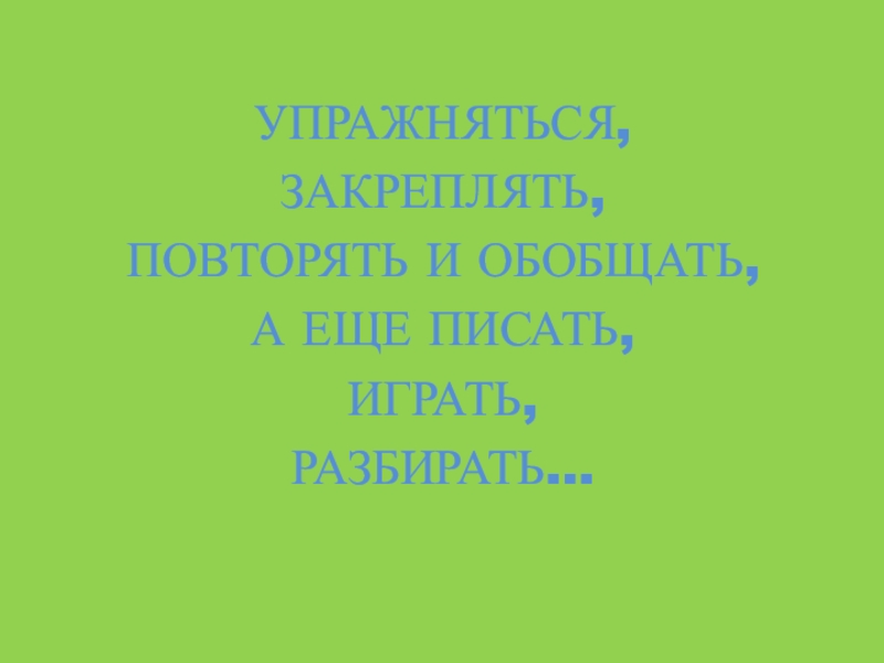 УПРАЖНЯТЬСЯ,ЗАКРЕПЛЯТЬ,ПОВТОРЯТЬ И ОБОБЩАТЬ,А ЕЩЕ ПИСАТЬ,ИГРАТЬ,РАЗБИРАТЬ…