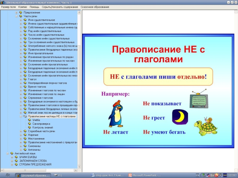 Презентация, доклад по русскому языку на тему Определение времени глаголов. Правописание НЕ с глаголами. (4 класс)