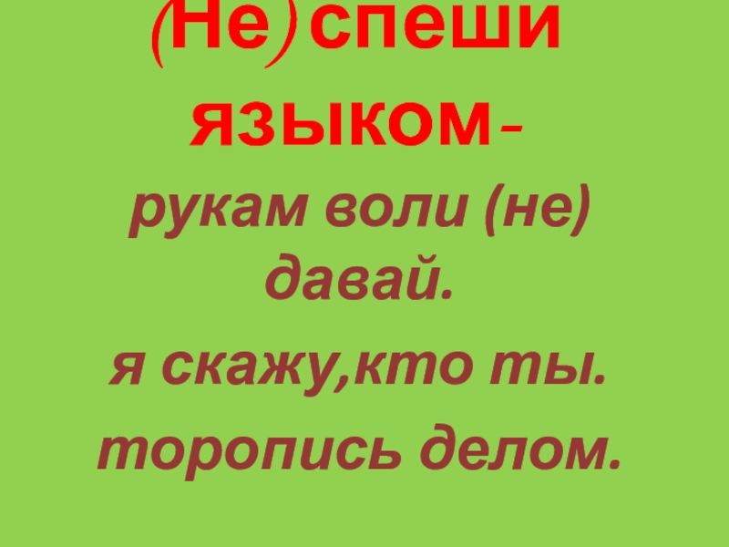 (Не) спеши языком-рукам воли (не) давай.я скажу,кто ты.торопись делом.