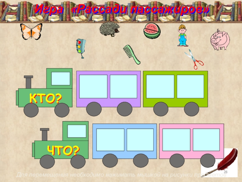 Для перемещения необходимо нажимать мышкой на рисунки предметов