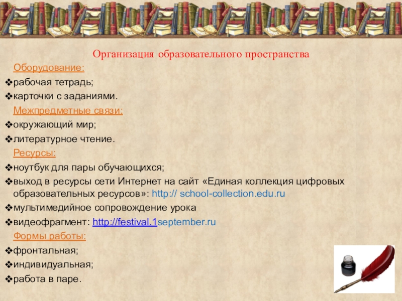выход в ресурсы сети Интернет на сайт «Единая коллекция цифровых образовательных ресурсов»: http:// school-collection.edu.ru