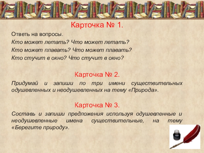 распознавать одушевленные и неодушевленные имена существительные (Пр).