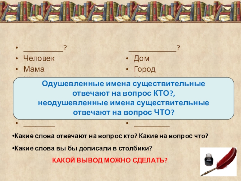 Какие слова отвечают на вопрос кто? Какие на вопрос что?