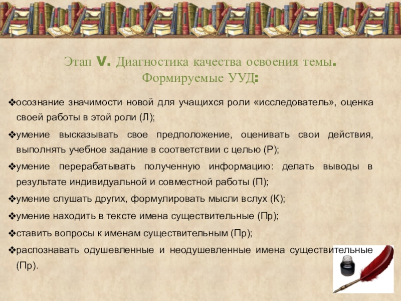 Слайд 25Этап V. Диагностика качества освоения темы.