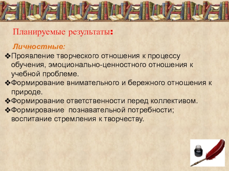Формирование познавательной потребности; воспитание стремления к творчеству.
