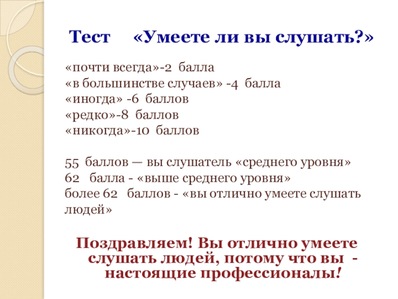 более 62 баллов - «вы отлично умеете слушать людей»