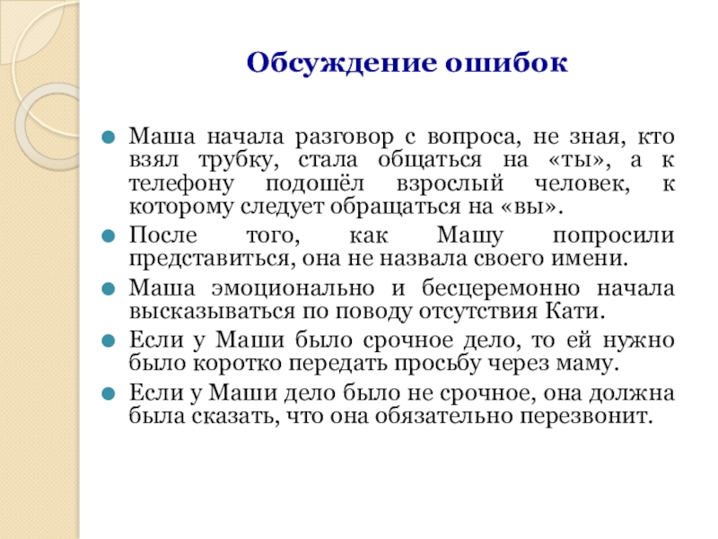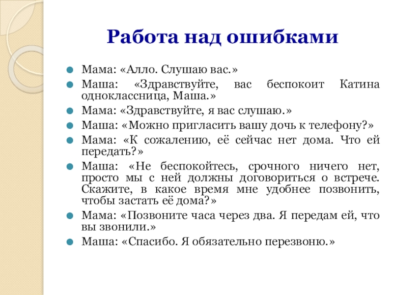 Маша: «Здравствуйте, вас беспокоит Катина одноклассница,