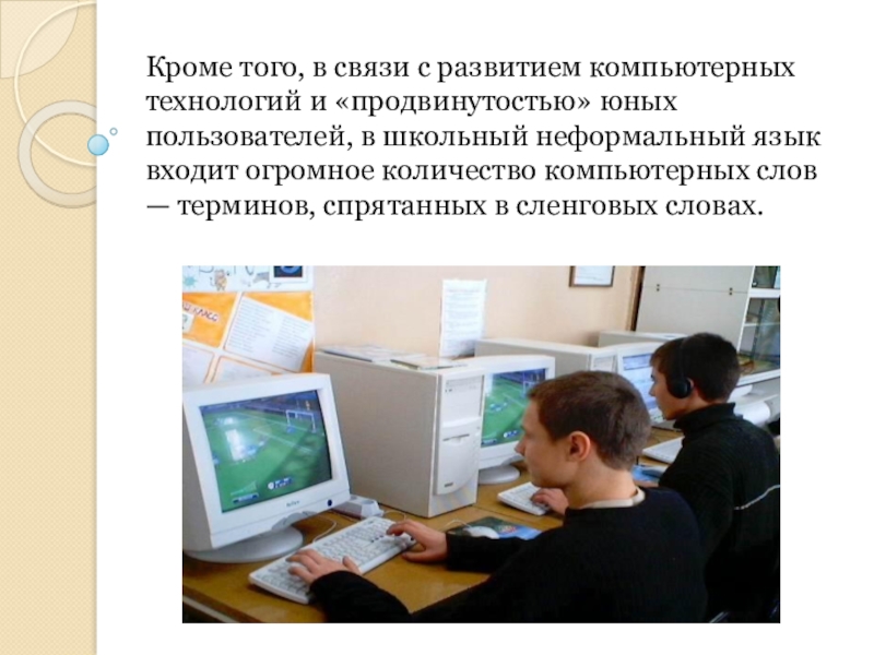 Слайд 22Кроме того, в связи с развитием компьютерных технологий и «продвинутостью» юных