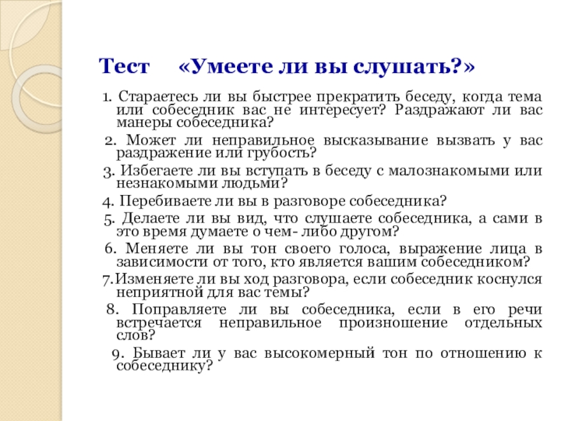 Тест «Умеете ли вы слушать?»