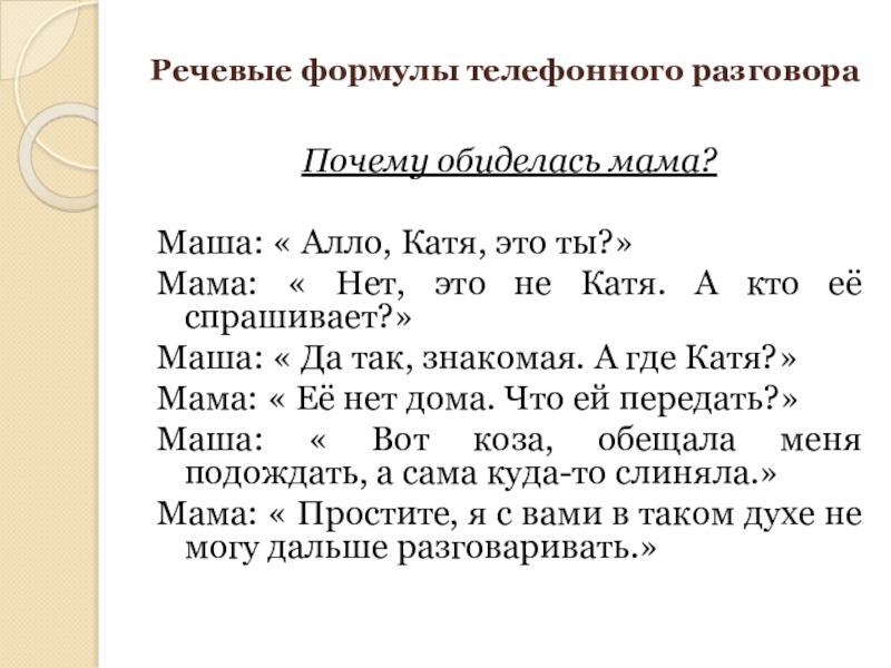 Речевые формулы телефонного разговора
