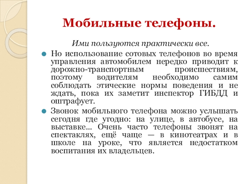 Этикет разговора по телефону.