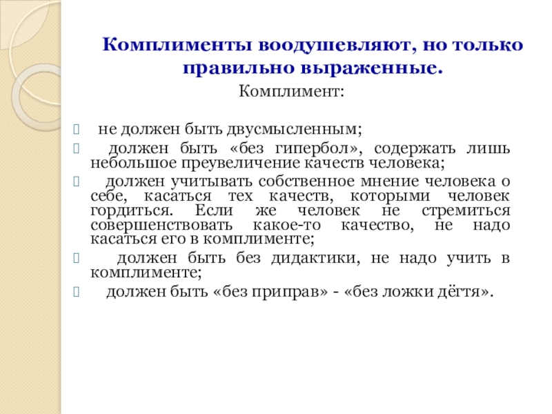 должен быть без дидактики, не надо учить в комплименте;
