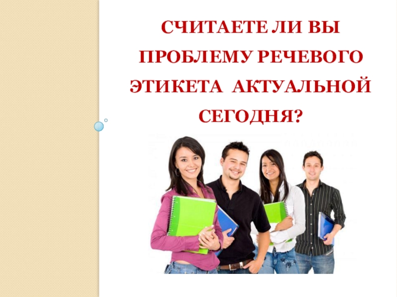 Слайд 20СЧИТАЕТЕ ЛИ ВЫ ПРОБЛЕМУ РЕЧЕВОГО ЭТИКЕТА АКТУАЛЬНОЙ СЕГОДНЯ?