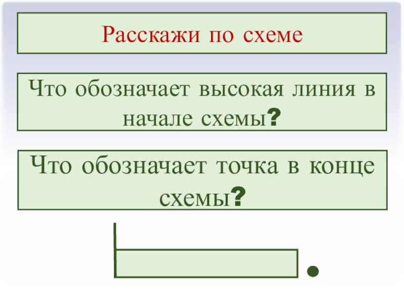 Расскажи по схемеЧто обозначает высокая линия в начале схемы?Что обозначает точка в конце схемы?