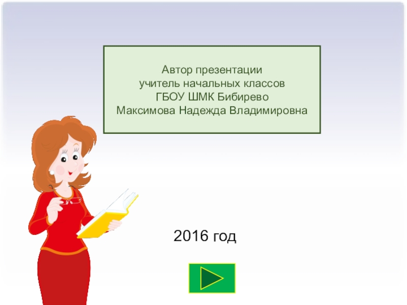 Автор презентацииучитель начальных классовГБОУ ШМК БибиревоМаксимова Надежда Владимировна2016 год