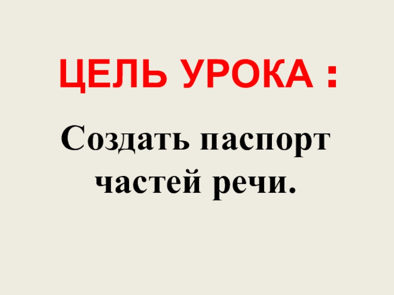ЦЕЛЬ УРОКА :Создать паспорт частей речи.