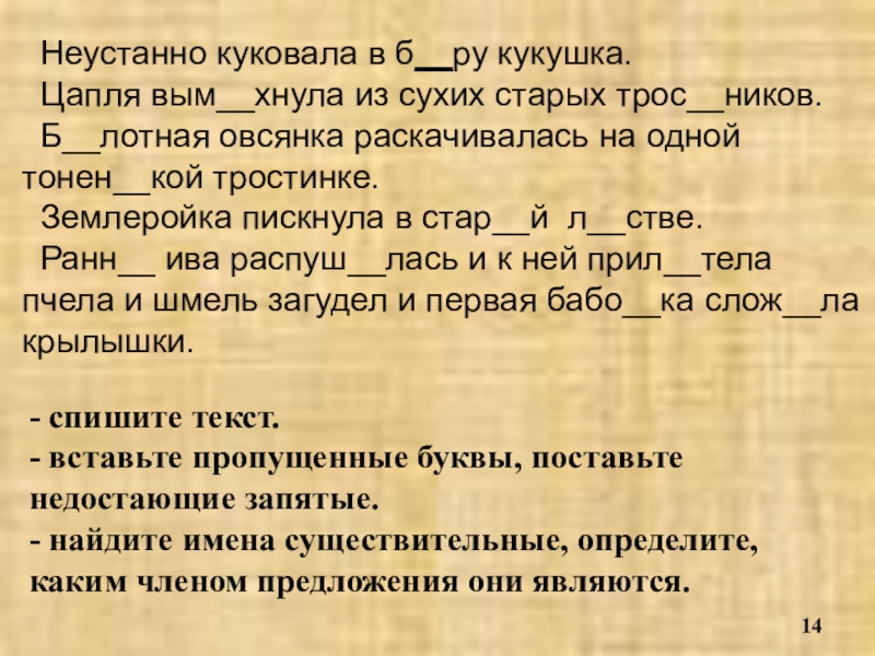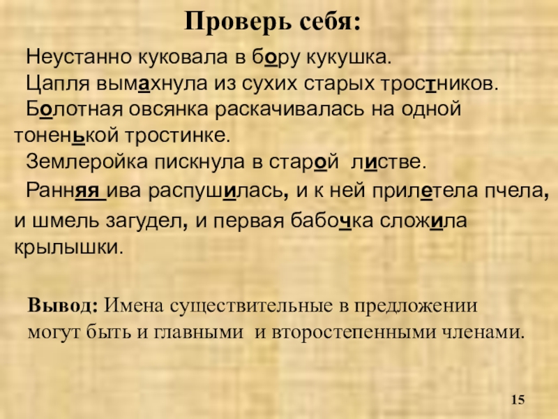 - найдите имена существительные, определите, каким членом предложения они являются.