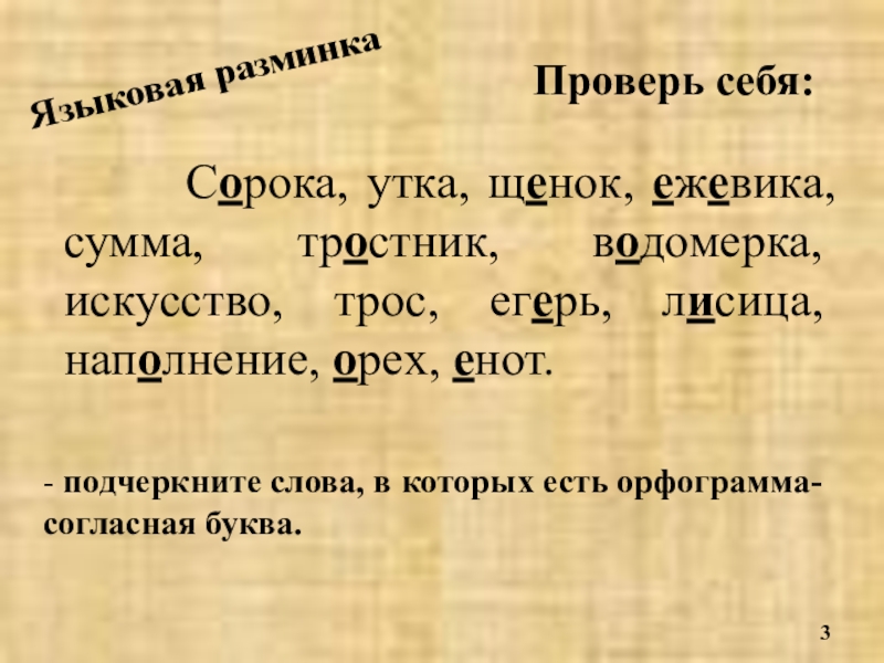 - подчеркните слова, в которых есть орфограмма- согласная буква.