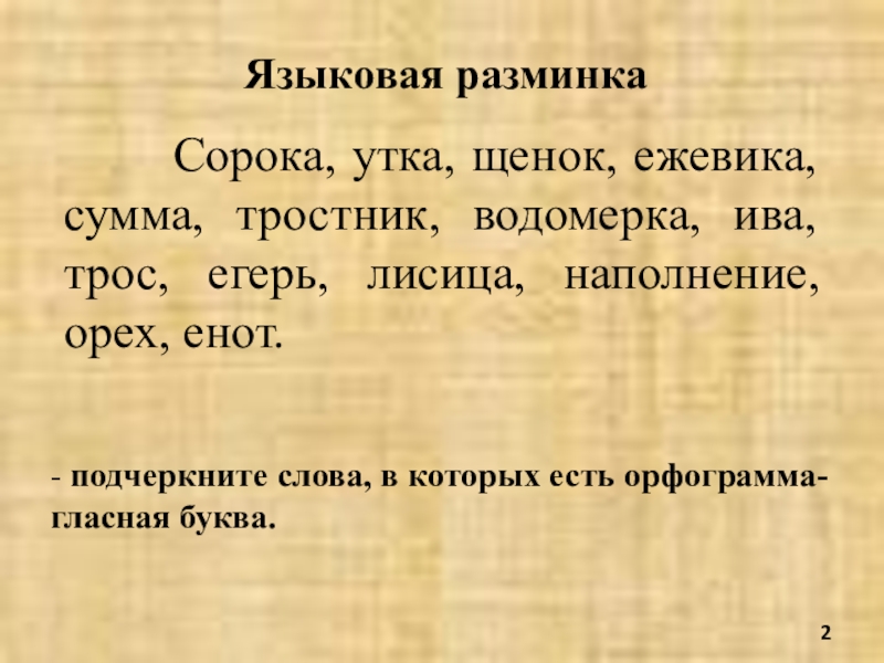 - подчеркните слова, в которых есть орфограмма- гласная буква.