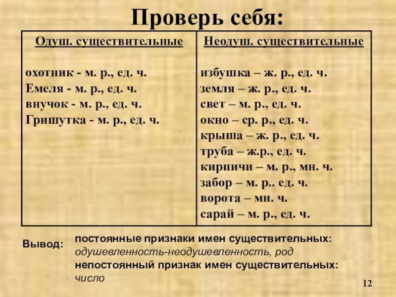Вывод: Имена существительные в предложении могут быть и главными и второстепенными членами.