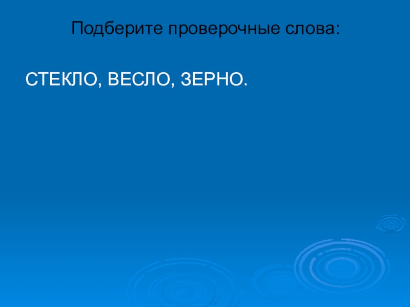 Подберите проверочные слова:СТЕКЛО, ВЕСЛО, ЗЕРНО.