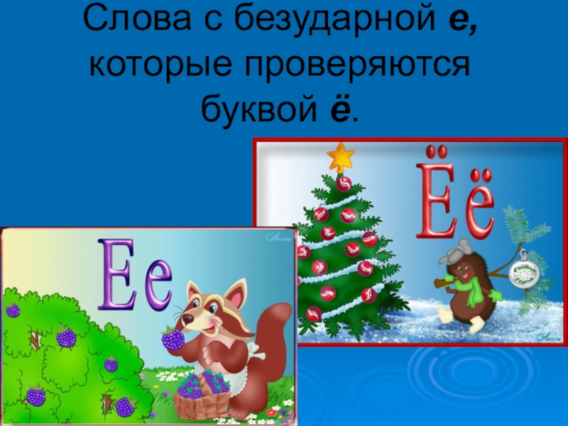 Презентация, доклад по русскому языку на тему Безударная е проверяемая ё