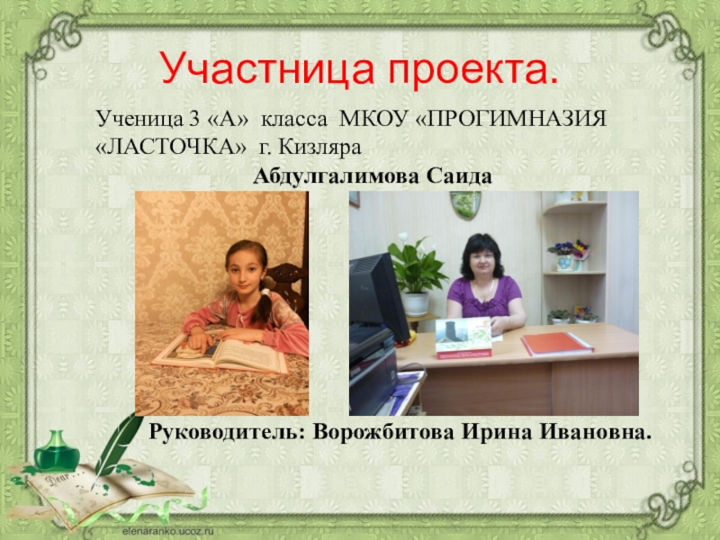 Ученица 3 «А» класса МКОУ «ПРОГИМНАЗИЯ «ЛАСТОЧКА» г. Кизляра