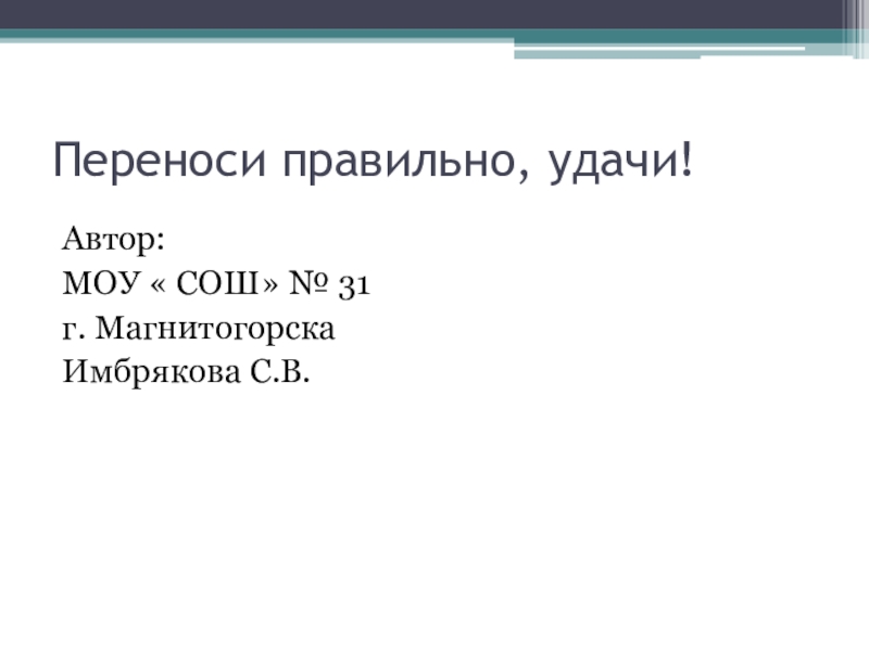 Переноси правильно, удачи!Автор:МОУ « СОШ» № 31г. МагнитогорскаИмбрякова С.В.