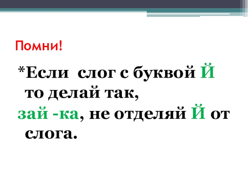 Помни!*Если слог с буквой Й то делай так,зай -ка, не отделяй Й от слога.