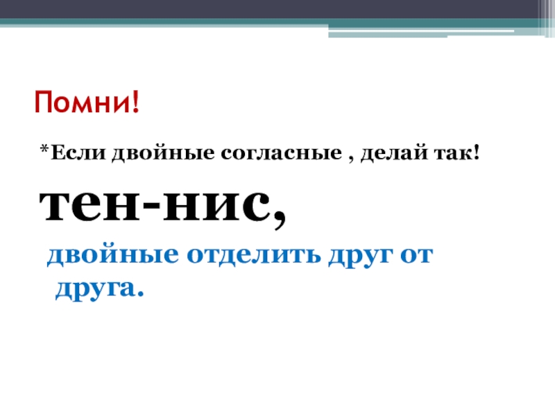 Помни!*Если двойные согласные , делай так!тен-нис, двойные отделить друг от друга.