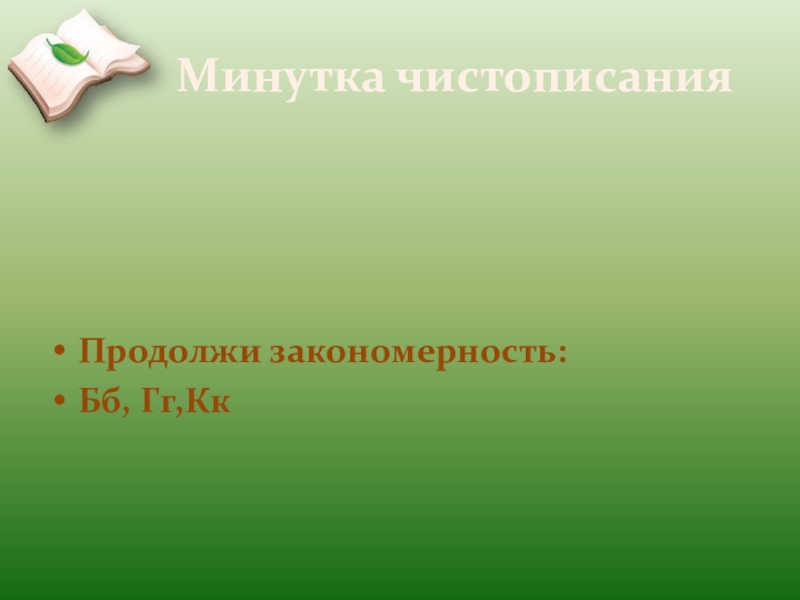 Минутка чистописанияПродолжи закономерность:Бб, Гг,Кк