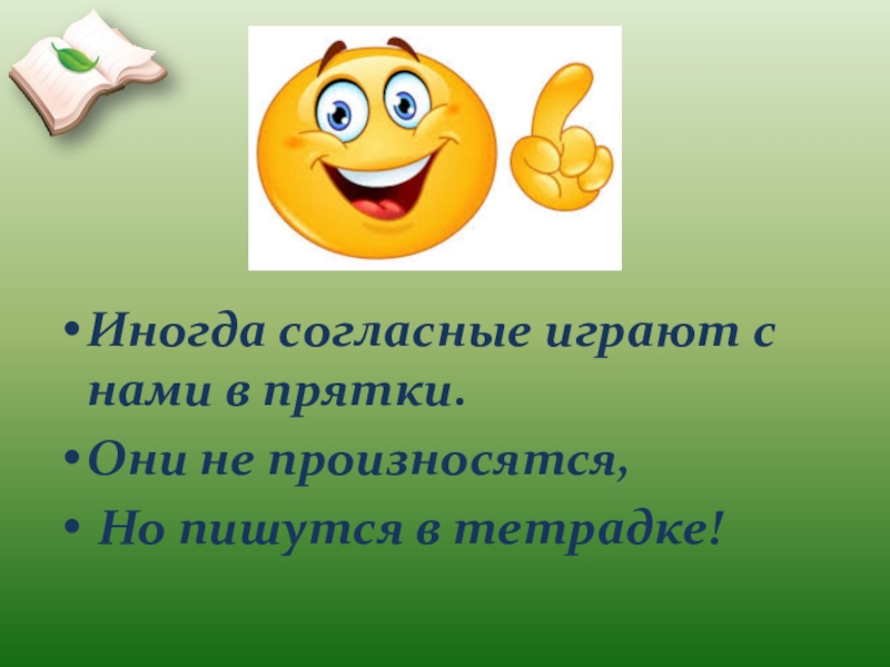 Иногда согласные играют с нами в прятки. Они не произносятся, Но пишутся в тетрадке!