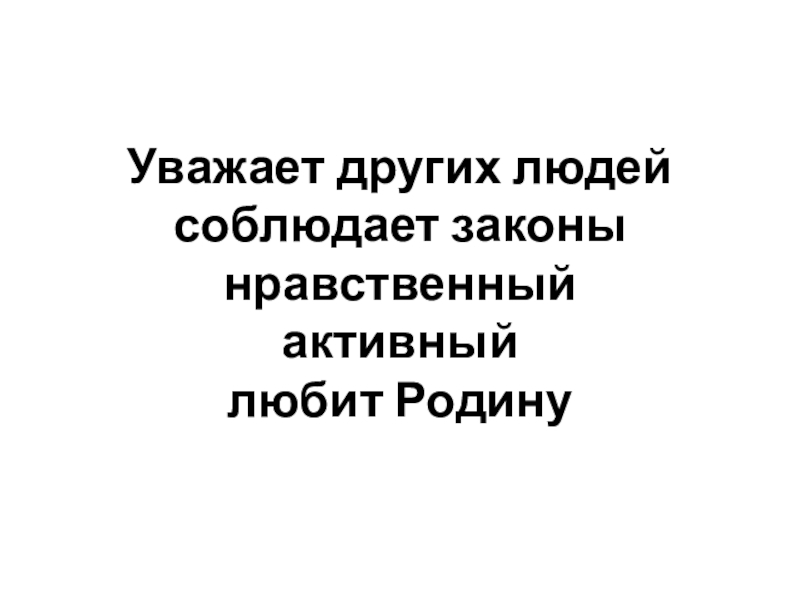 Уважает других людей соблюдает законы нравственный активный любит Родину