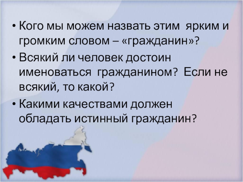 Кого мы можем назвать этим ярким и громким словом – «гражданин»?Всякий ли человек достоин именоваться гражданином? Если