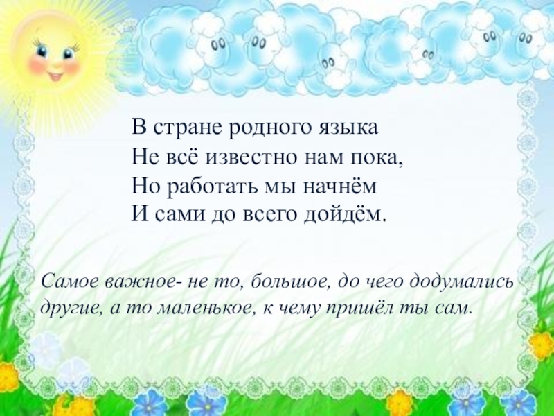 Самое важное- не то, большое, до чего додумались другие, а то маленькое, к чему пришёл ты сам.