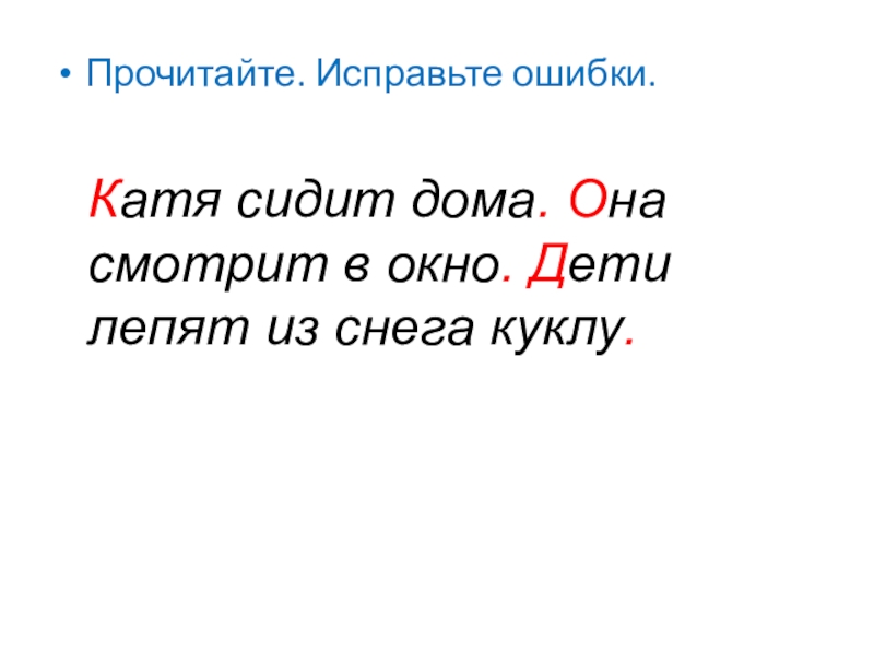 Катя сидит дома. Она смотрит в окно. Дети лепят из снега куклу.