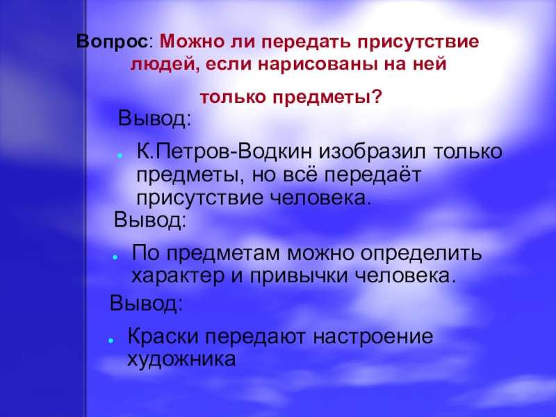 К.Петров-Водкин изобразил только предметы, но всё передаёт присутствие человека.