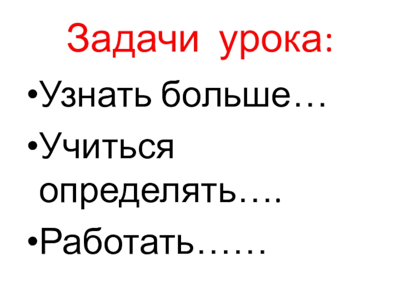 Задачи урока:Узнать больше…Учиться определять….Работать……