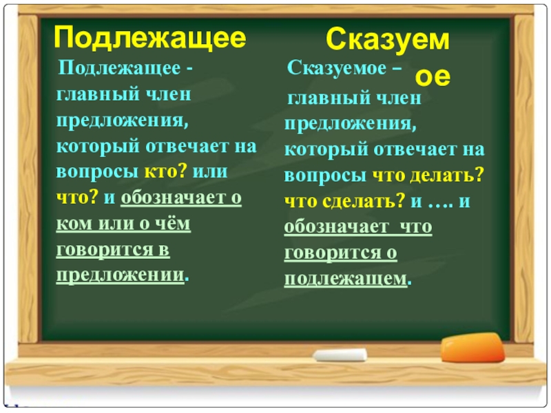 главный член предложения, который отвечает на вопросы что делать? что сделать? и …. и обозначает что говорится о подлежащем.