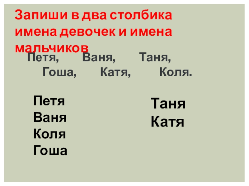 Запиши в два столбика