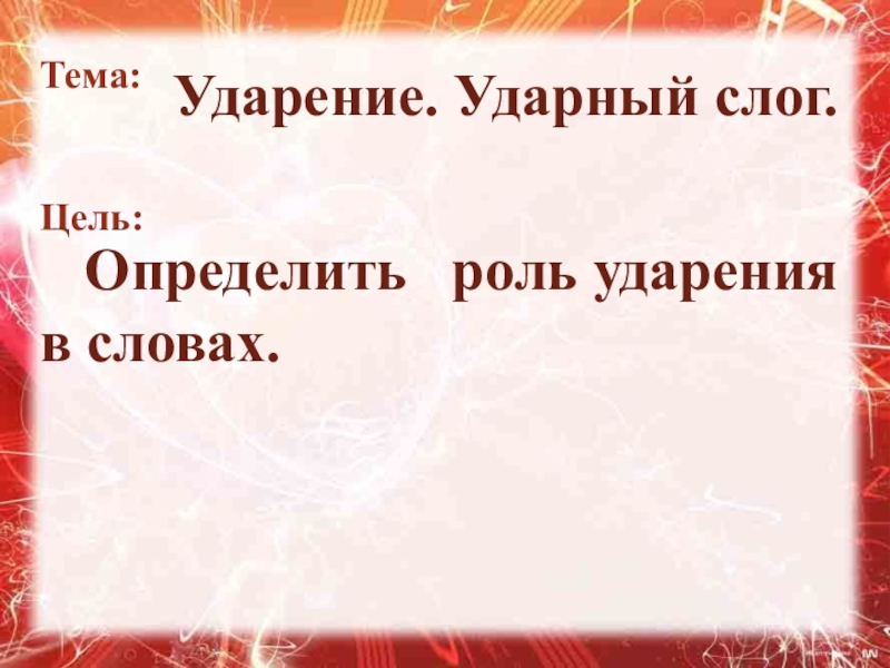 Тема:Цель:Ударение. Ударный слог.  Определить  роль ударения в словах.