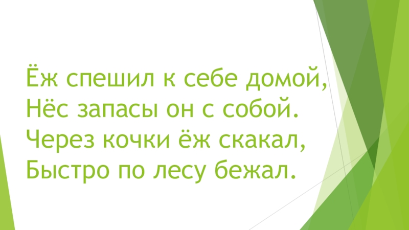 Слайд 38Ёж спешил к себе домой, Нёс запасы он с собой. Через кочки ёж