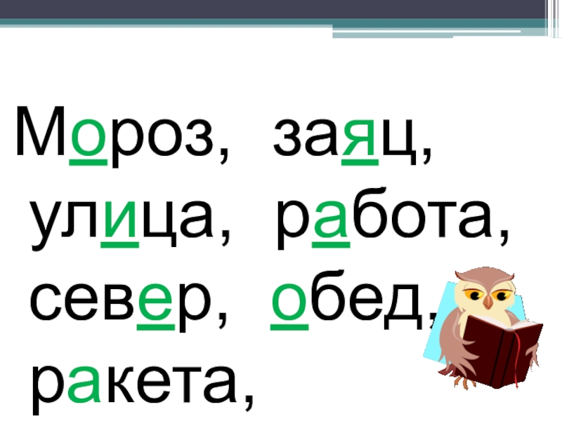 Слайд 3Мороз, заяц, улица, работа, север, обед, ракета, корабль.