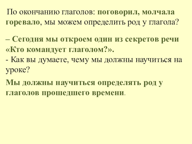 – Сегодня мы откроем один из секретов речи «Кто командует глаголом?».
